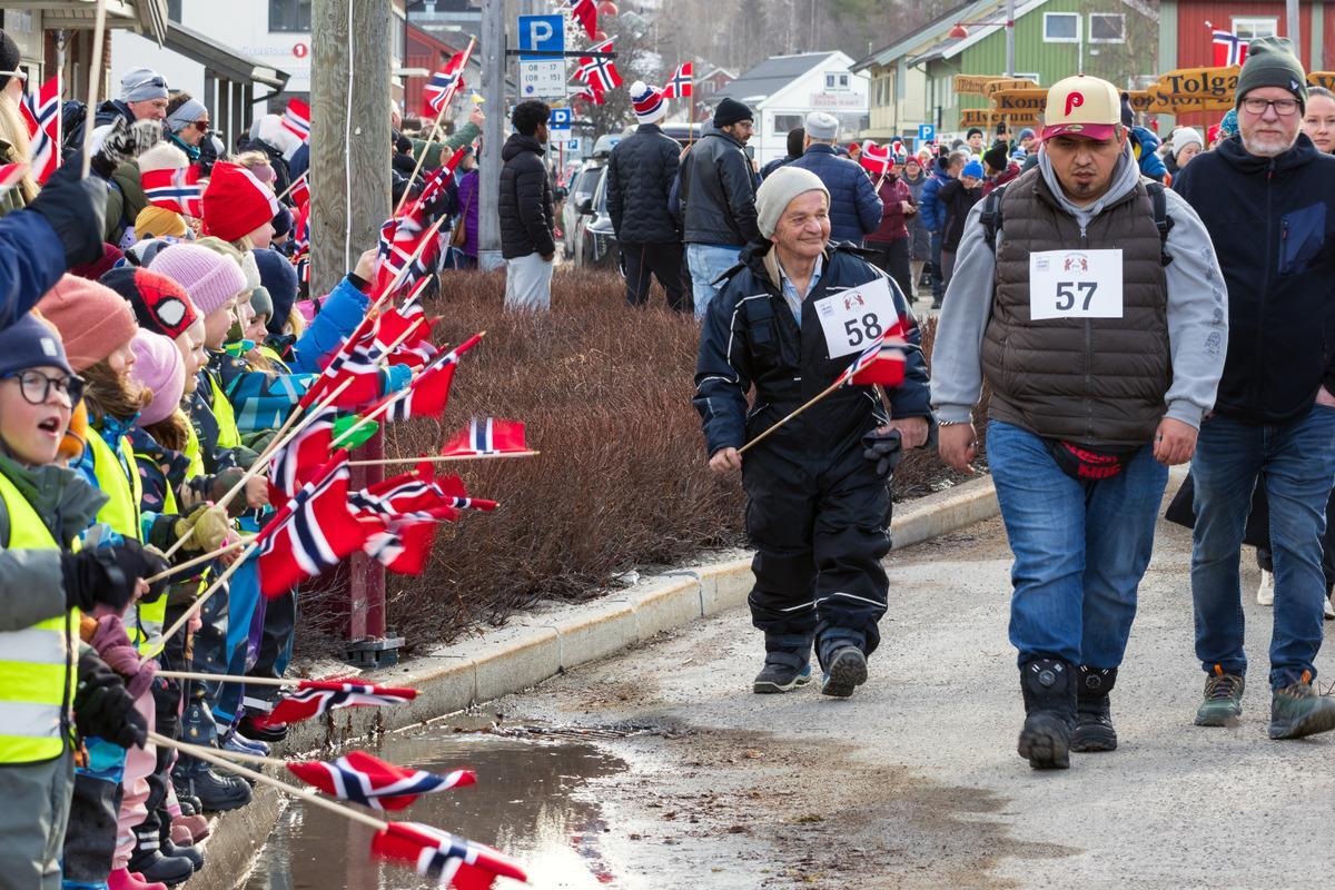 Langs Storvegen stod barnehagebarn, barneskoleelever og entusiastiske tryslinger med veivende flagg og heiet de fram.