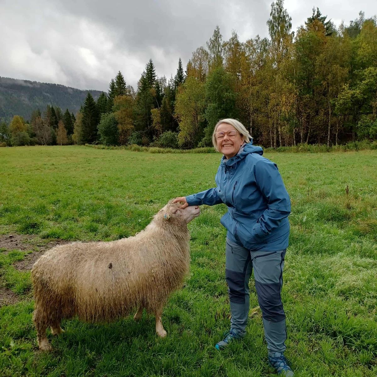 Digg å bli klødd! F.v.: Sau (ukjent navn) og Anja Holmøy Aamold.