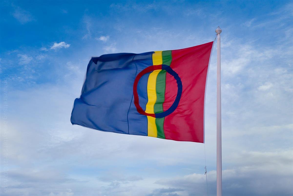Et viktig symbol i markeringen av 6. februar er flagget. Det samiske flagget er felles for alle samer, uavhengig av hvilket land de bor i. Flagget ble godkjent 15. august 1986 under Den 13. nordiske samekonferansen i Åre i Sverige, og er utformet av den samiske kunstneren Astrid Båhl fra Skibotn i Troms.