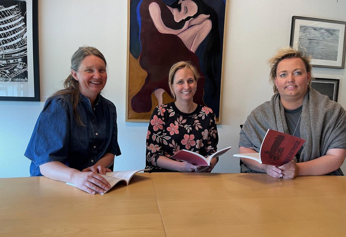 Kulturavdelingen er svært positive til et samarbeid med skrivefellesskapet. Fra venstre: biblioteksjef Tone Odden, kultursjef Anne N. Sætre og initiativtaker Marianne Haugseter Sarkkila.