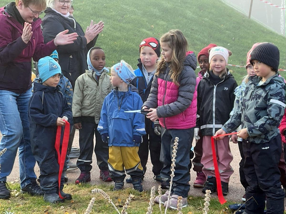 Innbygda barnehage er offisielt åpnet! Åpningen ble høytidelig markert med sang, snorklipping, omvisning ute og inne, taler, gaveoverrekkelser, kaffe og kake 14. oktober.