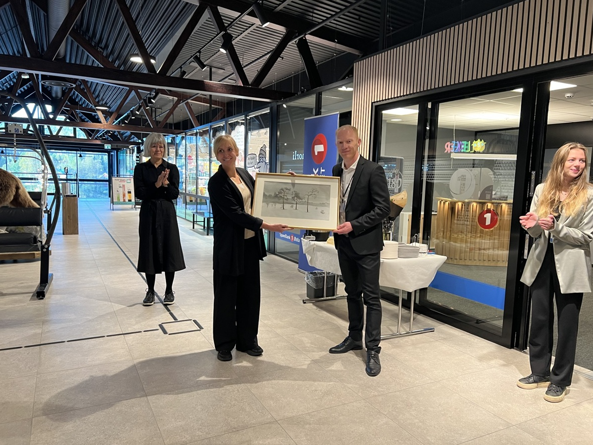 Tusen takk for gaven og tilliten. Vi håper at Sparebank1 Østlandet også i framtiden vil være en støttespiller for Trysil-kunsten og kulturen, og vi ønsker dere til lykke med de nye lokalene.