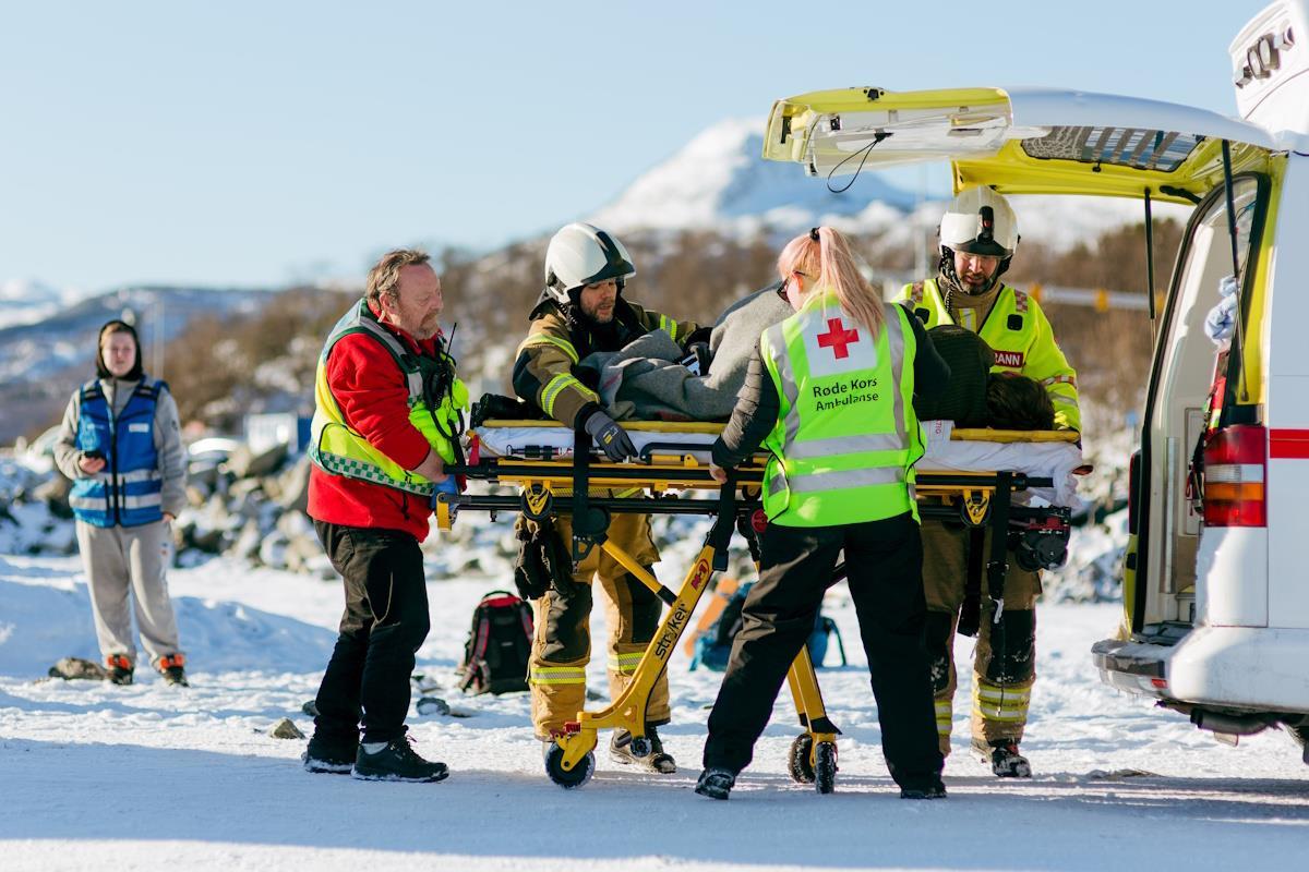 Bildet er fra totalforsvarsøvelsen i Harstad. Her var det mange markører i sving, og blålysetatene med Forsvaret og Heimevernet fikk mye å bryne seg på.