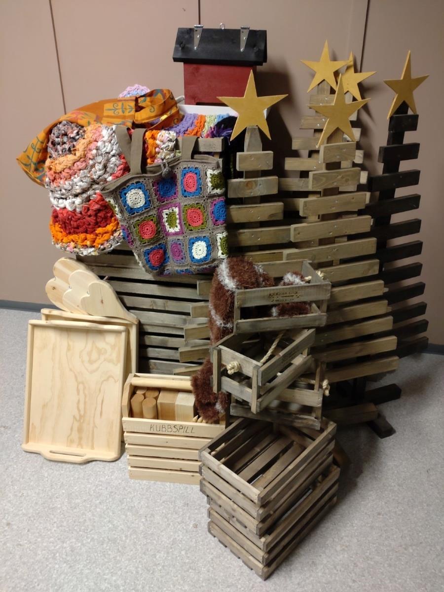 Her er noe av alt det fine og nyttige de lager og selger på jobbsentralen gjennom året - og som de har med seg på julemarkedet.