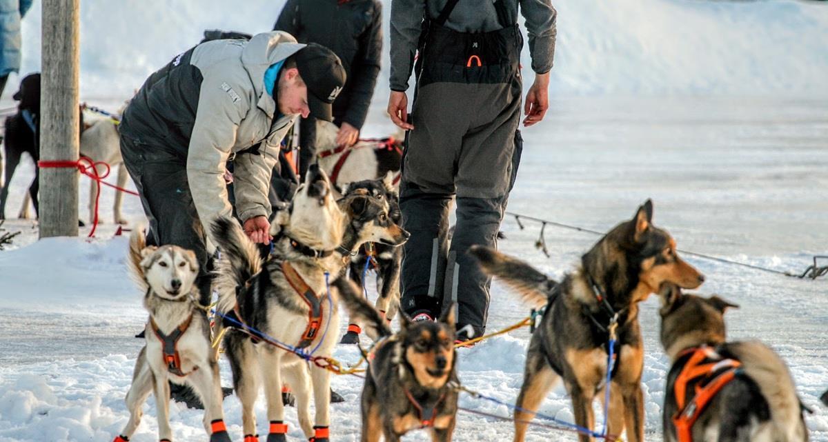 På startstreken blir det mye liv og røre når alle hundespannene står stilt opp ved siden av hverandre. Spannene kjører ut på lysløypa ved Vidsyn.